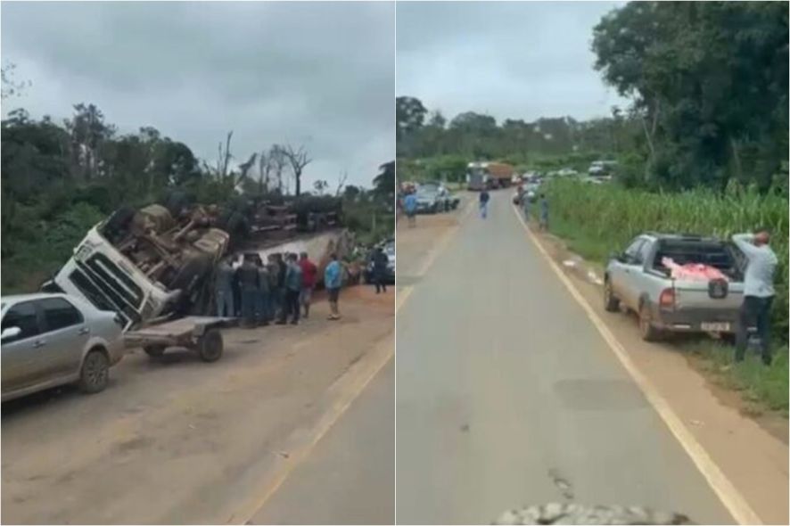 De acordo com informações da Polícia Civil, o caminhão Volvo FH 420 tombou por volta das 7h, a cerca de 30 km da cidade, quando o motorista perdeu o controle por causa da chuva.