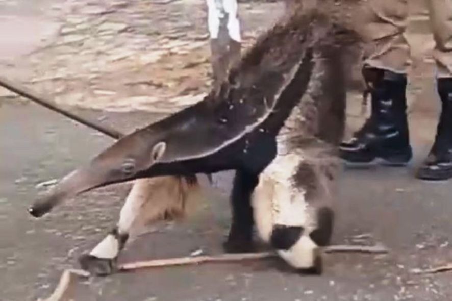 O Corpo de Bombeiros de Mato Grosso esgatou, na manhã de quarta-feira (26), um tamanduá-bandeira que estava no quintal de uma casa no bairro Jardim dos Estados, em Várzea Grande.