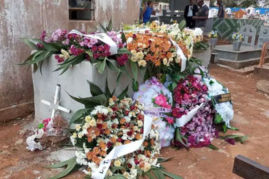 Coroas de flores no cemitério onde a jovem foi sepultada