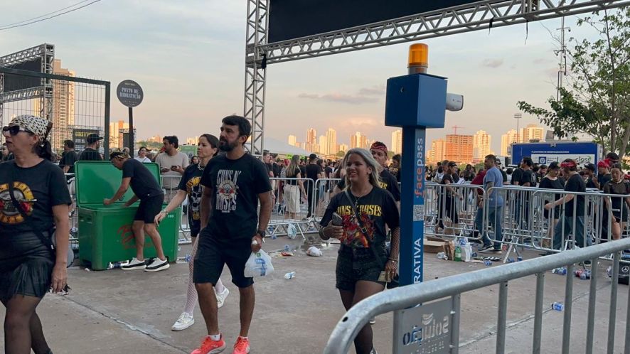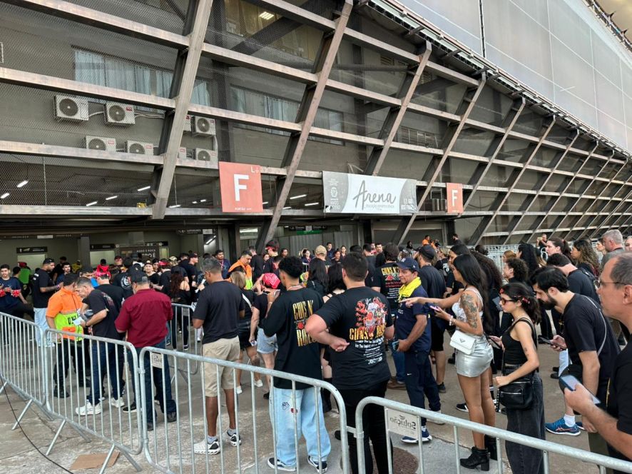 Os fãs do Guns N’ Roses já começaram a entrar na Arena Pantanal para curtir o show da banda, que acontece na noite desta sexta-feira (31).