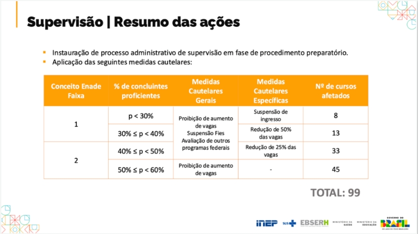 Entre as sanções previstas estão a redução ou suspensão de vagas para novos ingressantes e restrições ao acesso ao Fies e ao Prouni, medidas que ainda dependem de publicação no Diário Oficial da União. O MEC também afirmou que vai garantir o direito de defesa às instituições antes da aplicação definitiva das punições.