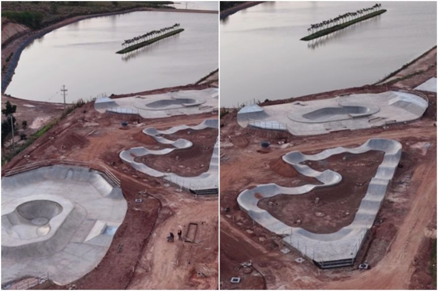 A futura maior pista de skate da América Latina, atualmente em construção no Parque Novo Mato Grosso, em Cuiabá, começa a revelar sua grandiosidade por meio de um vídeo aéreo divulgado pela Overall Engenharia de Esportes, empresa executora do projeto.