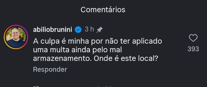 “A culpa é minha por não ter aplicado ainda uma multa por mal armazenamento”, respondeu Abilio.