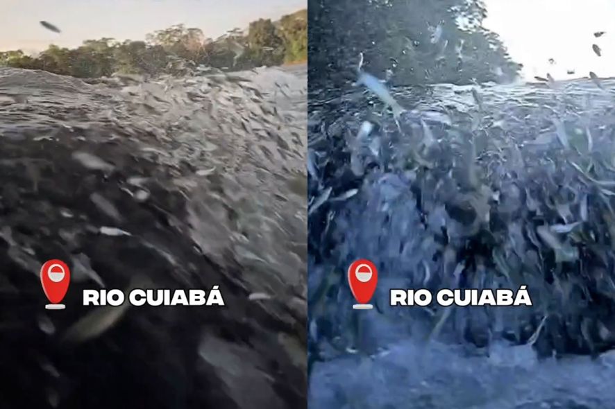 O governador Mauro Mendes (União) postou em suas redes sociais imagens de peixes subindo o Rio Cuiabá. Segundo ele, há muito tempo "não se via uma cena tão positiva no manancial".