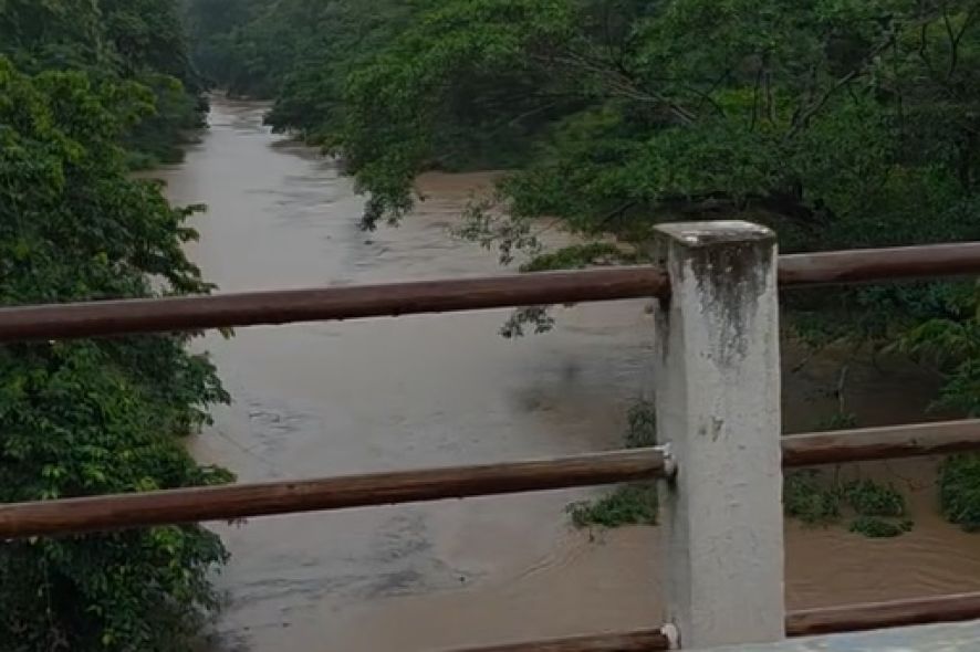 As chuvas intensas registradas em Cuiabá na última semana elevaram o volume do Rio Coxipó, que foi flagrado cheio na última quinta-feira (26).