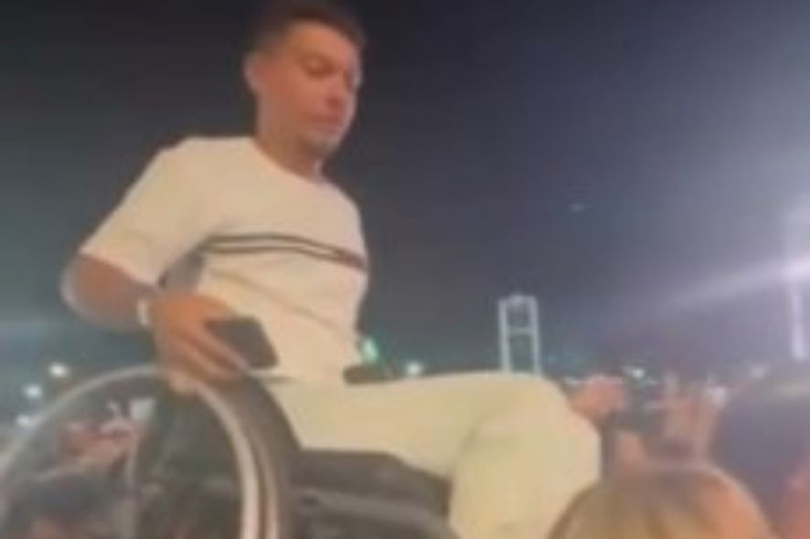 Um momento de descontração entre amigos viralizou nas redes sociais após um grupo erguer um colega cadeirante durante o show do cantor Nathanzinho, realizado na noite de quinta-feira (27), no Parque Novo Mato Grosso.