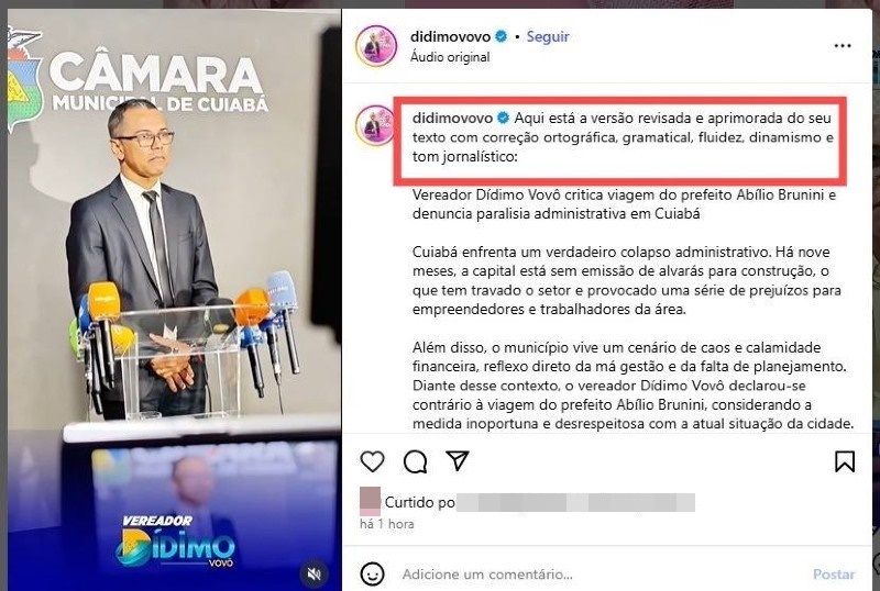 Os internautas não perdoaram: "Olha o nível do vereador da oposição, esqueceu de editar a legenda que o ChatGpt criou", disse um.