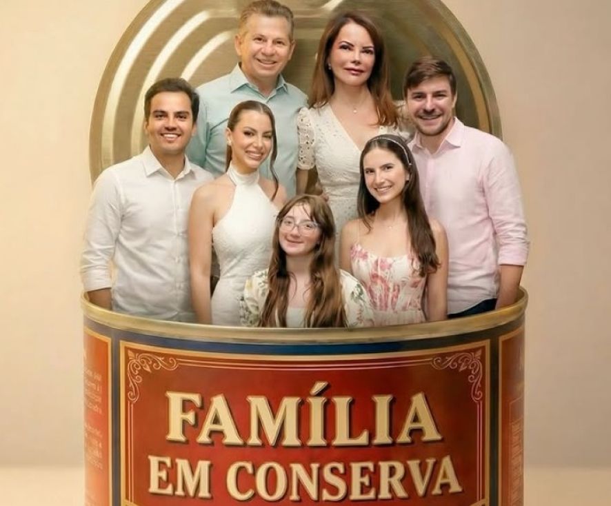 Ela postou uma foto – feita pela inteligência artificial - com seu marido, o governador Mauro Mendes, os filhos Luis Mendes, Ana Carolinne e Maria Luiza, o genro e a nora.