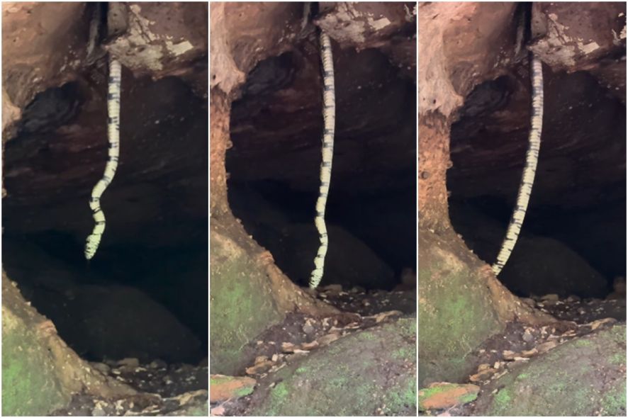 Um registro raro de uma cobra caninana durante uma trilha no Circuito das Cavernas, na Chapada dos Guimarães, se transformou em viral nas redes sociais no último fim de semana.
