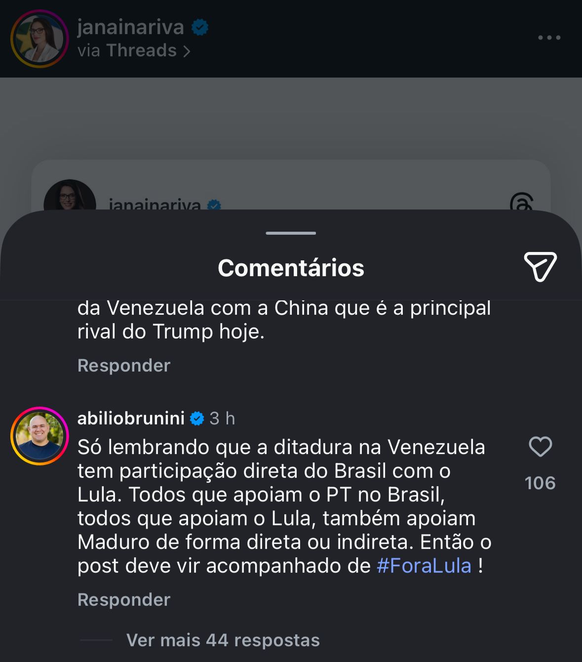 "Todos que apoiam o Lula também apoiam Maduro, de forma direta ou indireta”, afirmou Abilio ou defender que o debate venha acompanhado da hashtag #ForaLula.