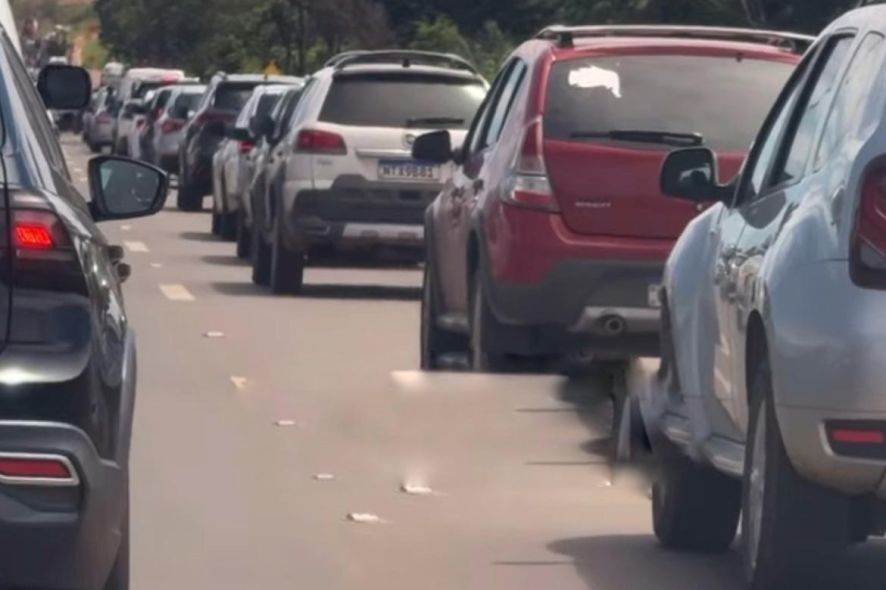 Um vídeo que circula nas redes sociais, gravado por um morador da Capital, mostra uma fila enorme de carros na MT-251.