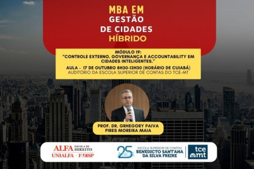 O Tribunal de Contas de Mato Grosso (TCE-MT) promove, nesta sexta-feira (17), o 19º módulo do MBA em Gestão de Cidades.