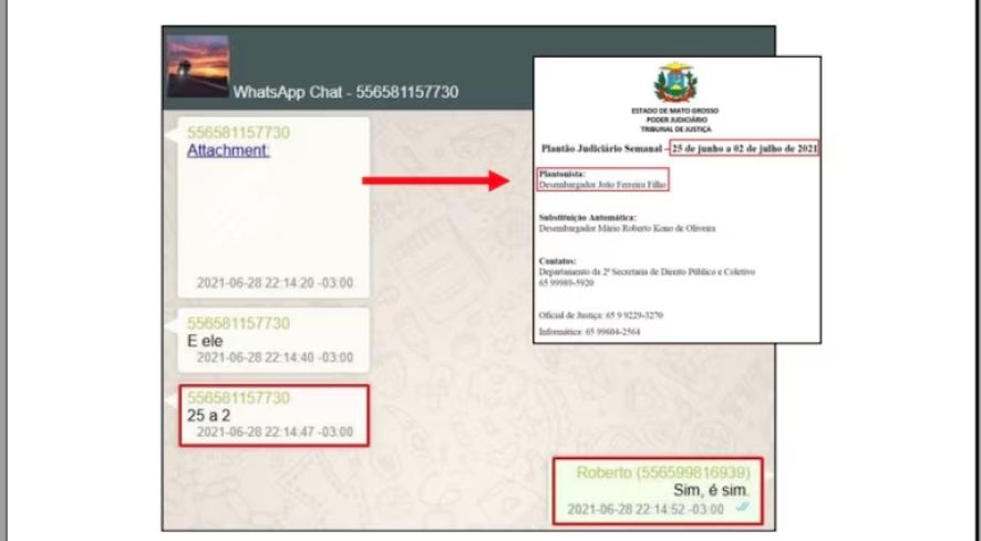 Os investigadores anotaram. “Conforme prometido pelo advogado Roberto Zampieri, de fato, o desembargador João Ferreira Filho concedeu a ordem de soltura em sede de habeas corpus, durante seu plantão judiciário.”