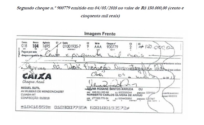Segundo a ação, do total de R$ 1,8 milhão foram pagos R$ 1 milhão para a empresa. Desse valor, R$ 550 mil foram quitados pela própria Selma em quatros cheques, durante a pré-campanha.
