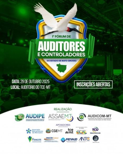 Organizado em parceria pela Associação dos Auditores Públicos Externos do TCE-MT (AUDIPE-MT), a Associação dos Auditores da Auditoria Geral do Estado de Mato Grosso (ASSAE-MT) e a Associação dos Auditores e Controladores Internos dos Municípios de Mato Grosso (AUDICOM-MT), o fórum tem como tema central “Controle fortalecido: base para políticas públicas eficientes, eficazes e efetivas”.