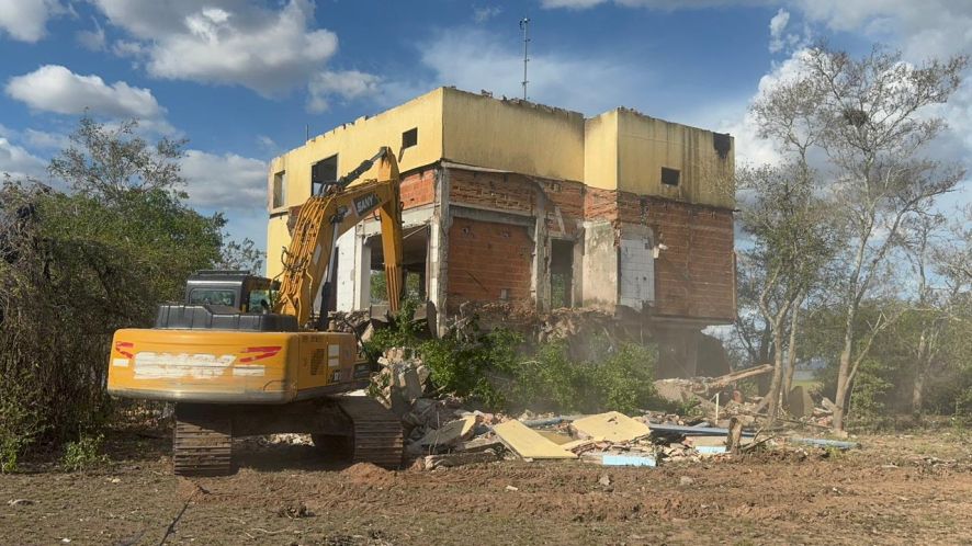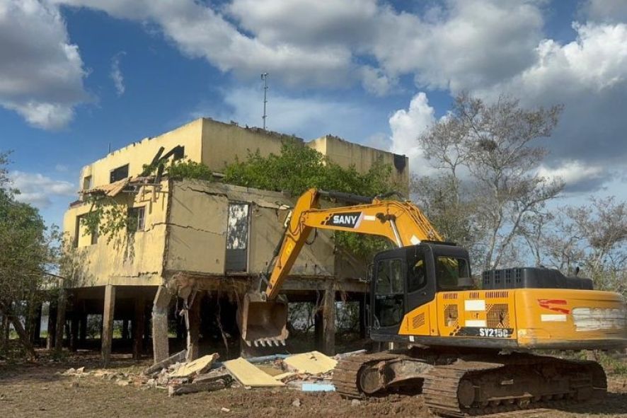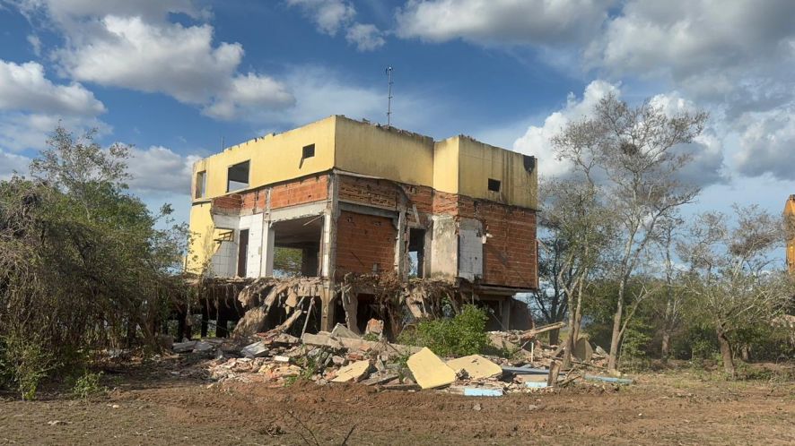 Após 27 anos de ação judicial, o Ministério Público de Mato Grosso (MPE) conseguiu executar a demolição de uma casa de veraneio construída de forma irregular no leito maior da Baía de Siá Mariana (área de preservação permanente e planície de inundação) no Pantanal mato-grossense. A demolição foi realizada nesta segunda-feira (1º).