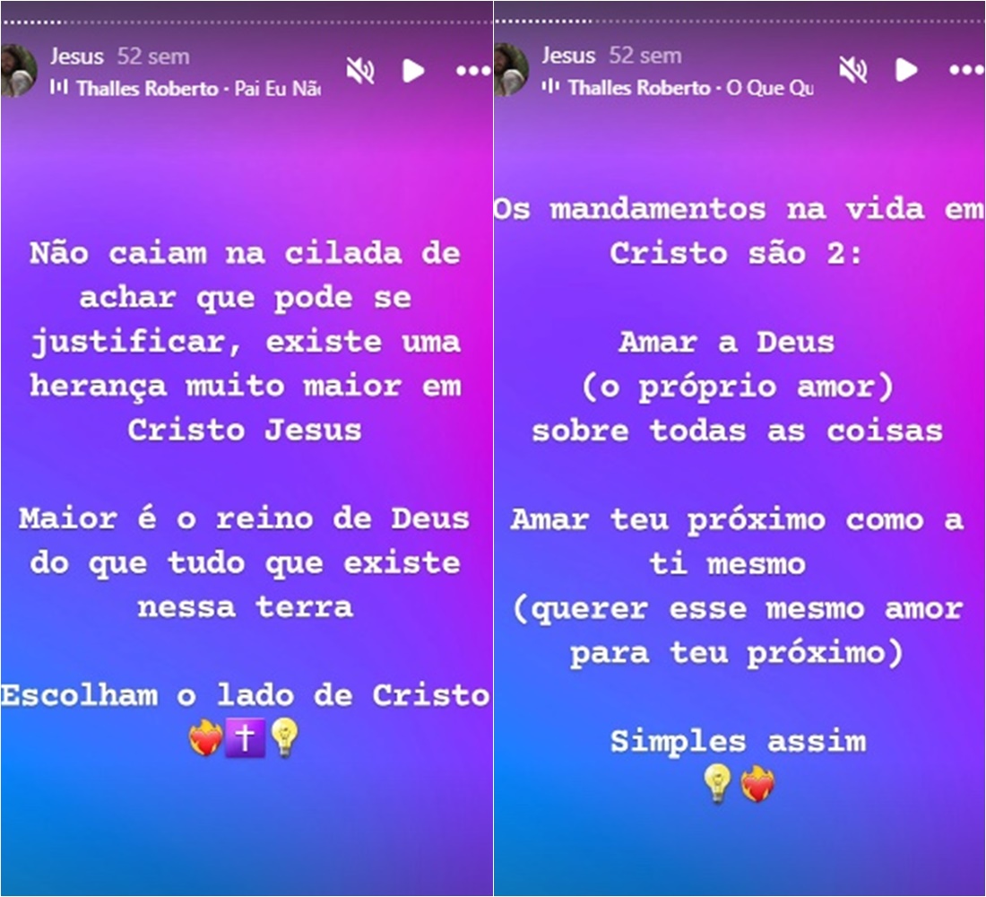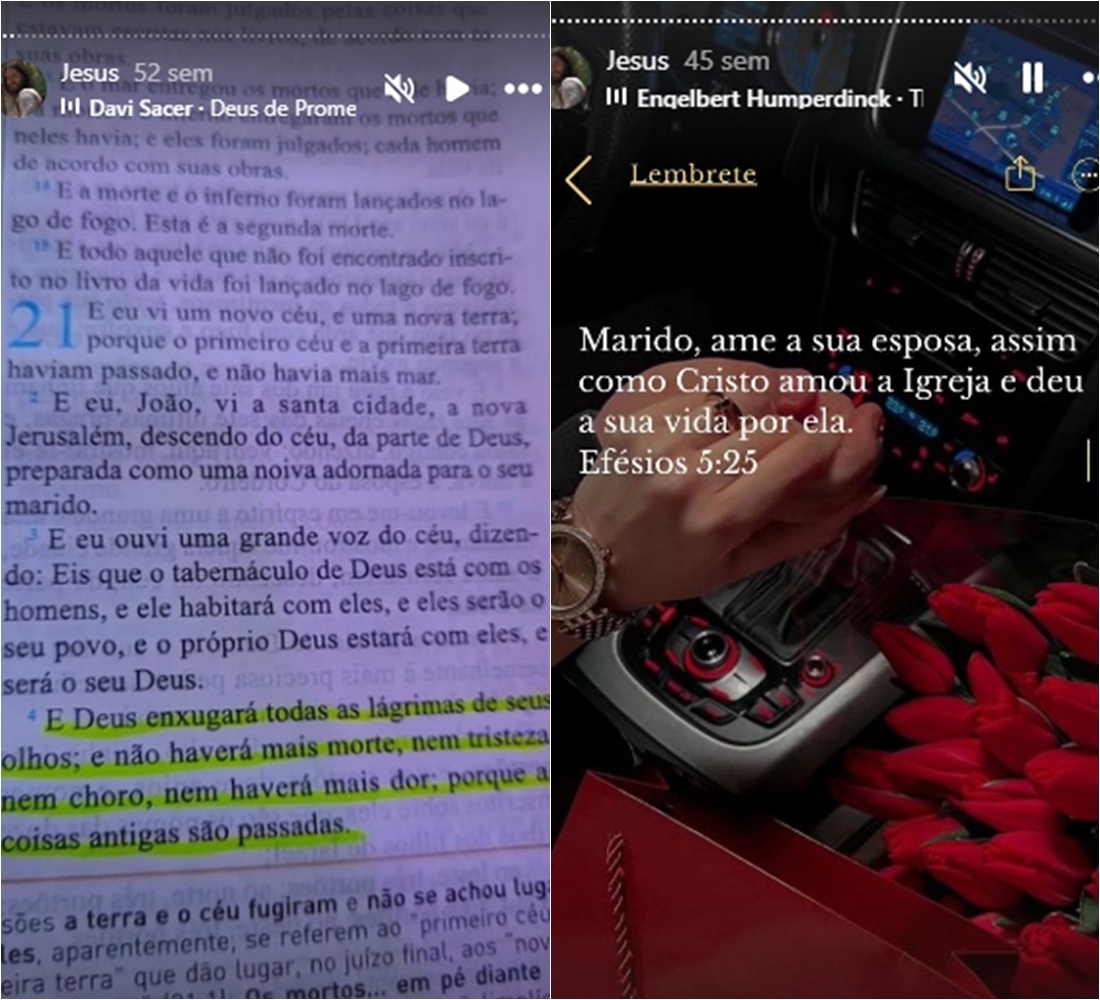 Em outra publicação, ele fala sobre a relação entre marido e mulher e que a esposa deve ser amada como a Cristo: “Marido, ame a sua esposa, assim como Cristo amou a Igreja e deu a sua vida por ela” (Efésios 5:25).
