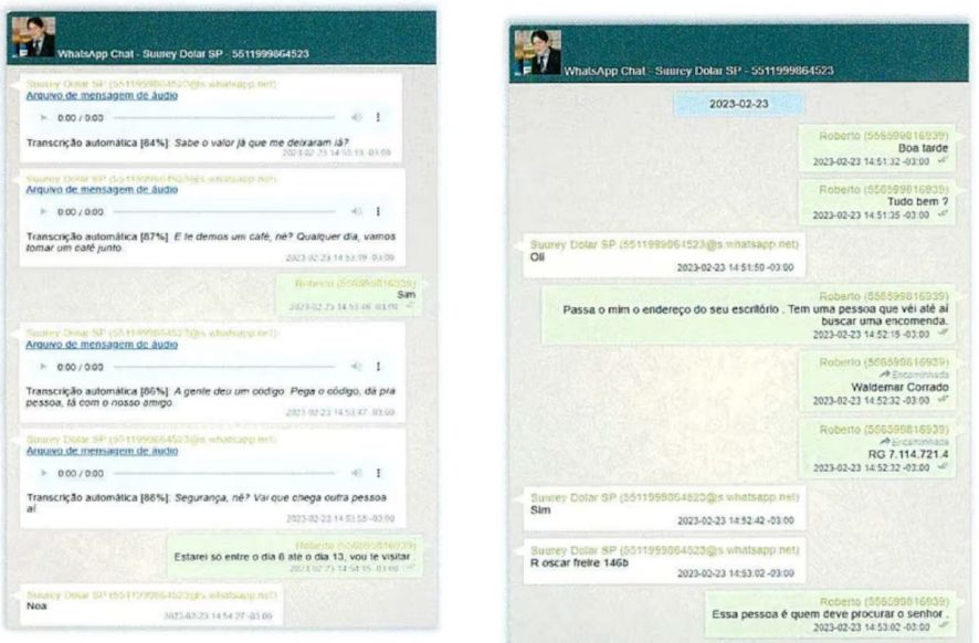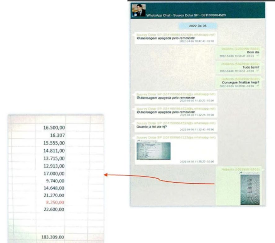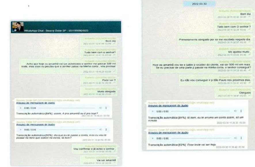 Mensagens encontradas no celular de Zampieri mostram que o contato salvo como “Surrey Dólar SP” tratava com o advogado de operações financeiras fracionadas e trocas constantes de contas bancárias para movimentação expressivas de valores.