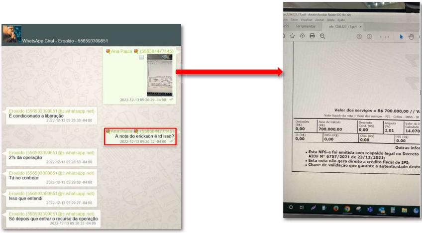 A nota fiscal relacionada ao suposto serviço de intermediação foi emitida pela empresa em 12 de dezembro de 2022, poucos dias antes da assinatura real do contrato, no valor de R$ 700 mil.