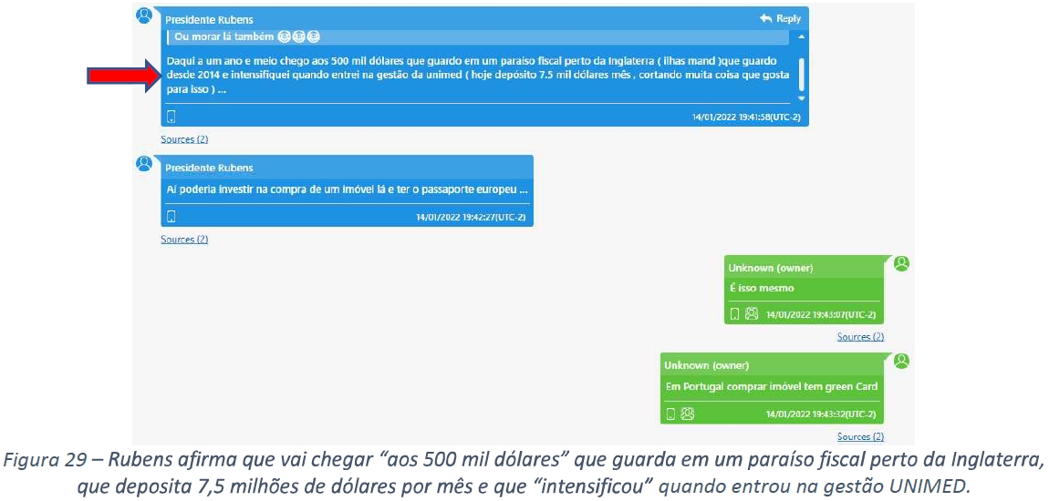 Mais adiante na conversa, o relatório expõe Rubens afirmando que desde que foi eleito para presidir a Unimed, aumentou a transferência de dinheiro que “esconde” na Ilha de Man, território da Coroa Britânica conhecido por favorecimento em tributos fiscais.