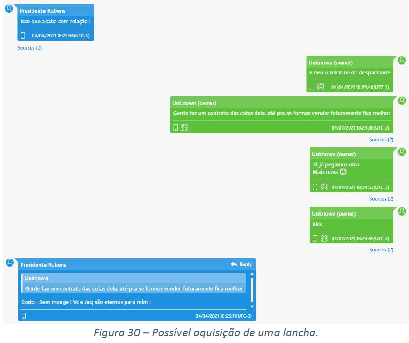 Já em outros prints, o ex-presidente da Unimed e o ex-consultor executivo falam sobre a aquisição de uma lancha.