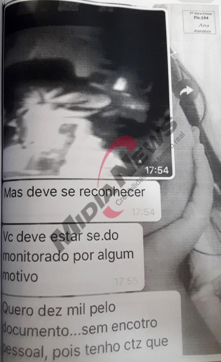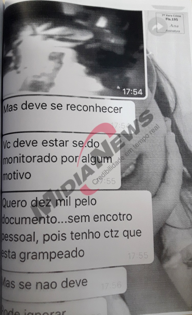 “Esse documento pra mim não serve pra nada. Mas pra você pode significar muita coisa [...] Você deve estar sendo monitorado por algum motivo. Quero dez mil pelo documento... sem encontro pessoal, pois tenho certeza que está grampeado. Se não deve, pode ignorar”.