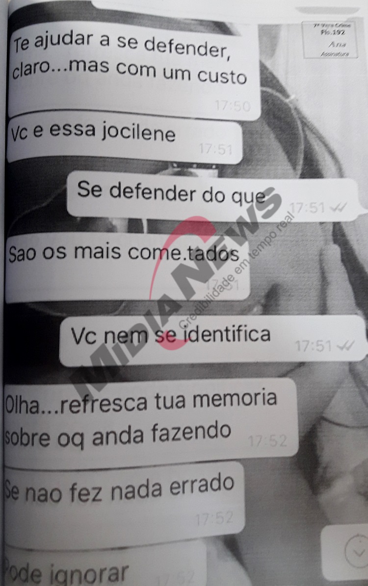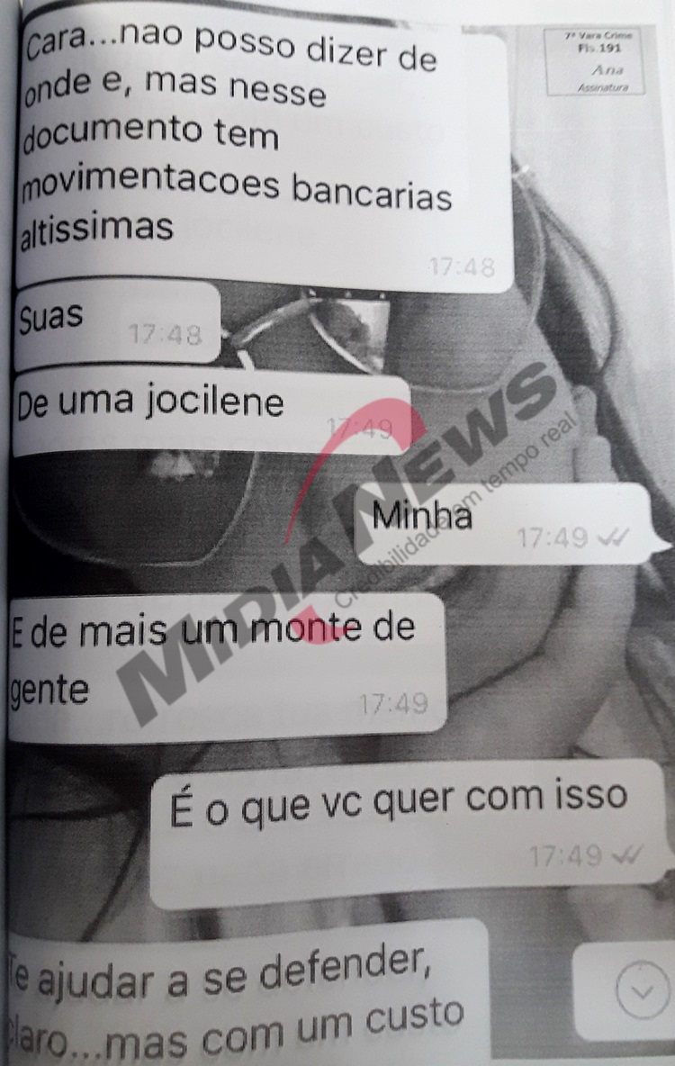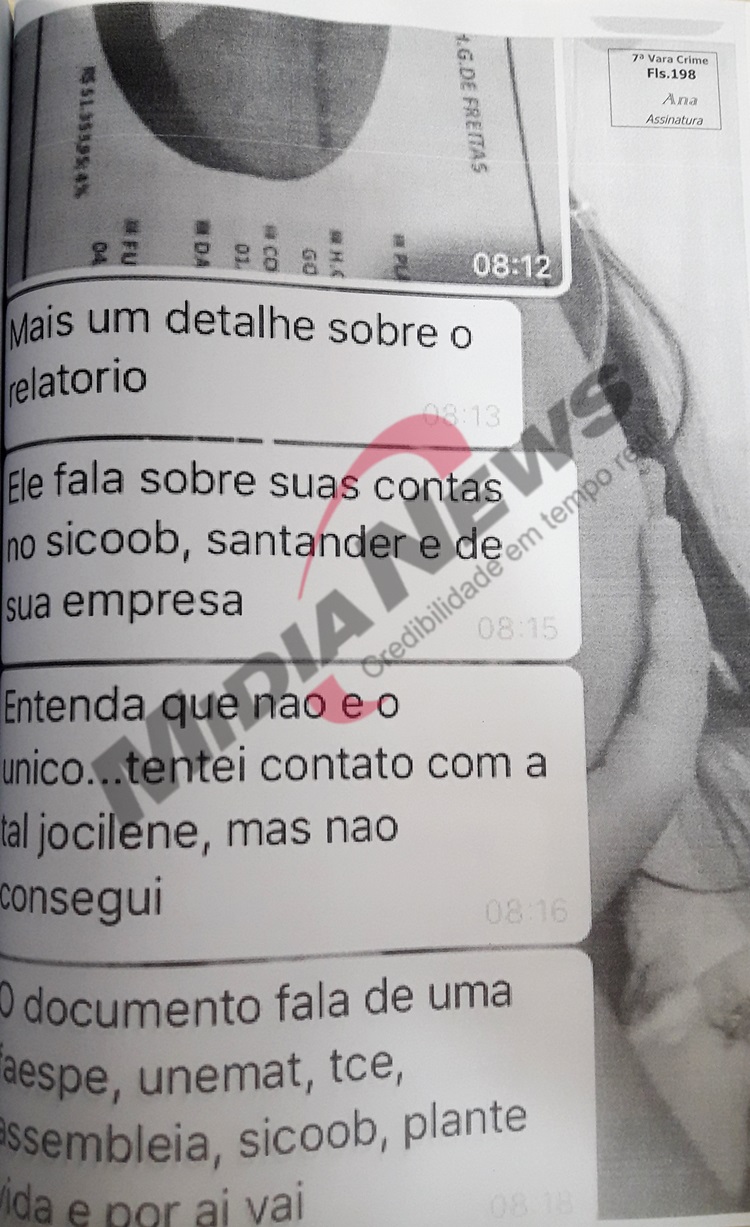 As conversas foram anexadas à colaboração premiada e homologada pela juíza Selma Arruda, da Vara Contra o Crime Organizado da Capital.