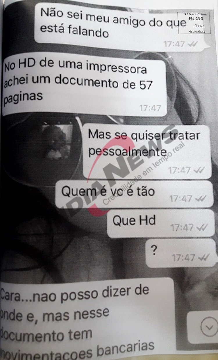 Em delação premiada firmada com o Ministério Público Estadual, Hallan – que é ex-funcionário da Fundação de Apoio ao Ensino Superior Público Estadual (Faespe) - entregou mensagens enviadas por WhatsApp em que um interlocutor até então desconhecido oferecia documentos sigilosos da investigação em troca do pagamento de R$ 10 mil.