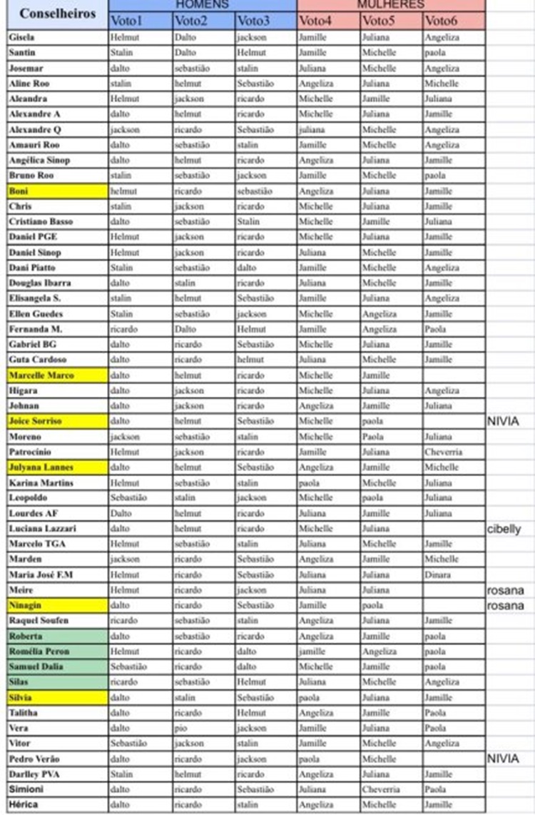 Nos nomes femininos, também receberam votos: Angelina Neiverth (23), Paola Cristina Fernandes (15), Rosana Ramires (3), Nivia Najara Fornari (3), Daniela Marques Echeverria (2), Dinara de Arruda Oliveira (1), Cibelly de Jesus Amaral (1).