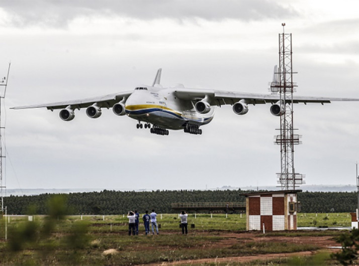 Veja o momento em que o maior avião do mundo chega ao Brasil