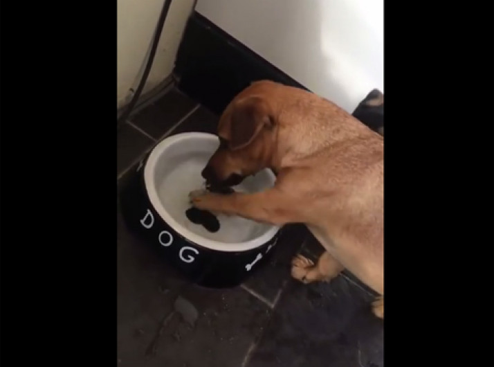 Cão tenta pegar "osso" em tigela de água e viraliza na web