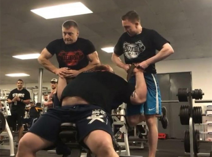 Homem conhecido por levantar meia tonelada usa amigos como supino