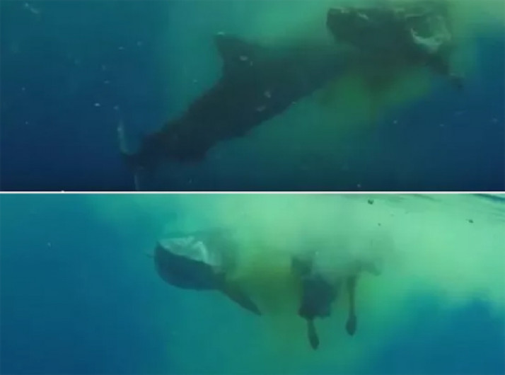 Tubarão é visto comendo vaca no meio de oceano