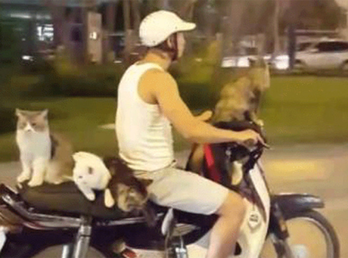 Vietnamita é flagrado dirigindo moto com 4 gatos