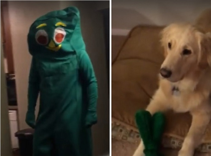 Cadela enlouquece ao ver dono fantasiado como seu brinquedo
