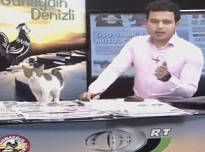 Gatinho de rua 'invade' telejornal ao vivo na Turquia