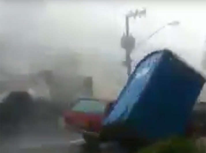 Banheiro químico 'voa' durante temporal em Santa Catarina