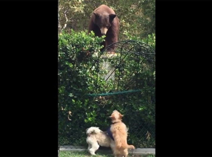 Cachorrinhos corajosos 'encaram' urso em casa na Califórnia
