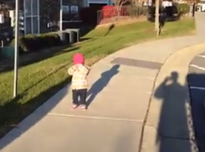 Menina fica impressionada com a sua própria sombra