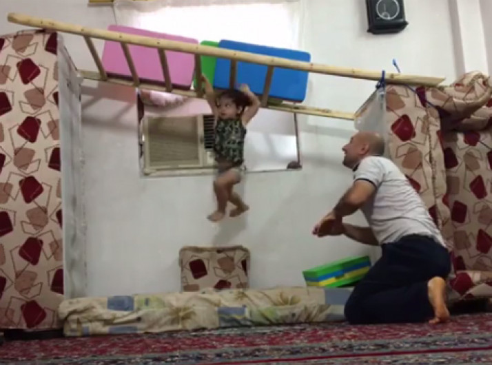 Menina faz acrobacias com móveis improvisados; veja