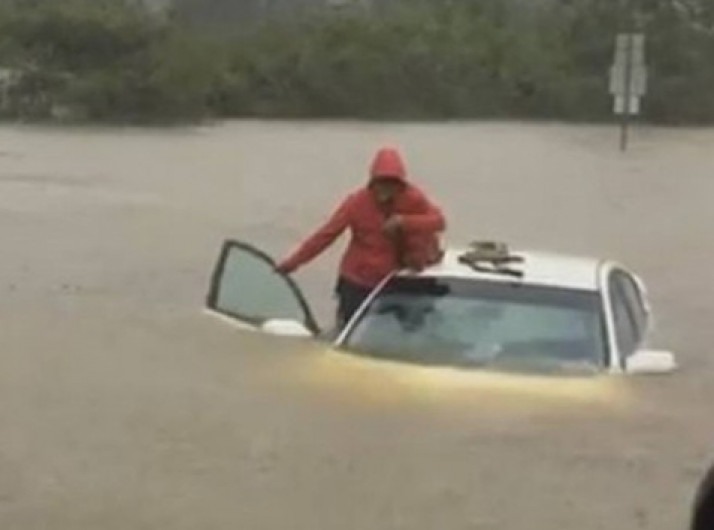 Policiais transmitem ao vivo resgate de mãe e filho durante furacão