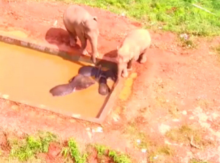 Elefantes são resgatados em tanque d’agua na China