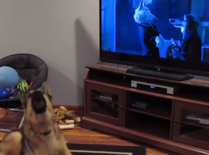 Pastor Alemão uiva junto com os lobos do filme