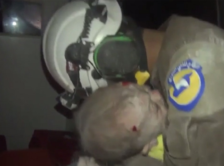 Socorrista chora ao resgatar bebê de escombros na Síria
