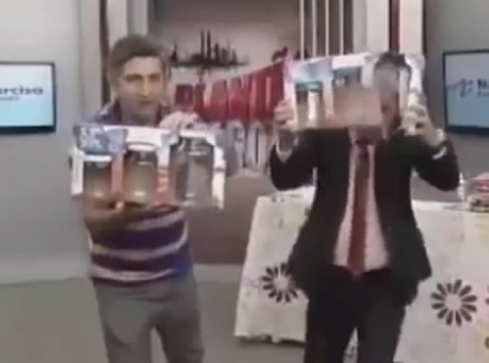 Apresentador estraga o merchan todo e fica constrangido ao vivo
