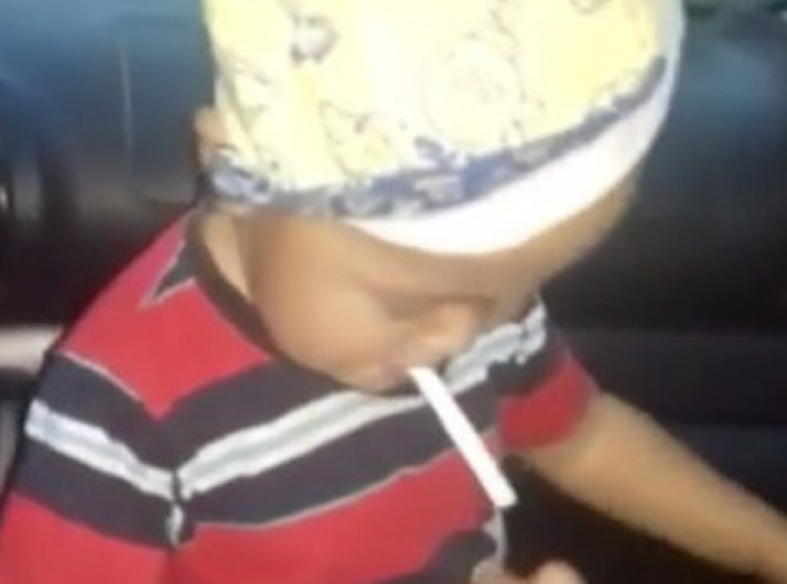 Mulher choca ao ensinar o filho, de 2 anos, a fumar