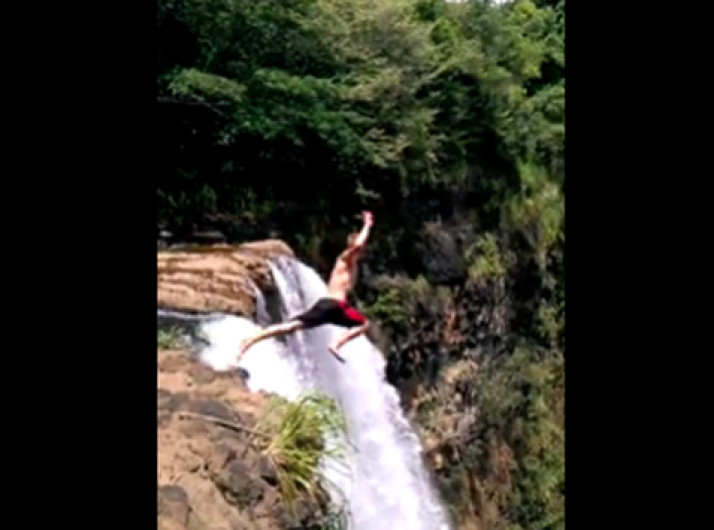Salto de cachoeira no Havaí por pouco não termina em tragédia