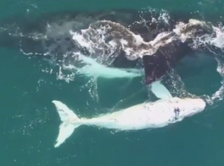 Pesquisadores encontram raro filhote branco de baleia franca