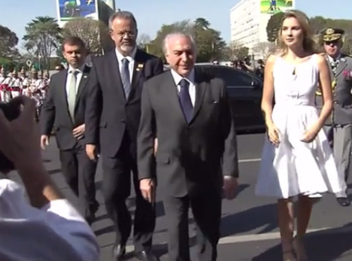 Manifestantes gritam "fora, Temer" no desfile de 7 de Setembro