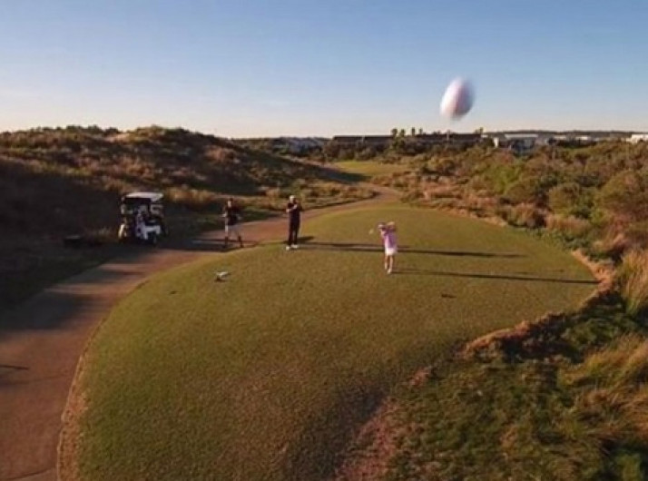 Menina dá "tacada perfeita" e acerta bolinha de golfe em drone